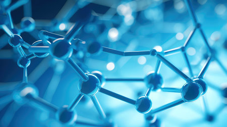 Blue molecular structure illustration showcasing scientific concepts and research, emphasizing modern technology and innovation, perfect for education and presentations