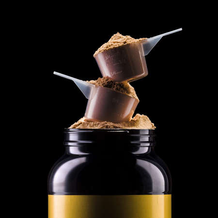 Protein powder, a full scoop of whey protein powder, sport nutrition for athletes and bodybuilders