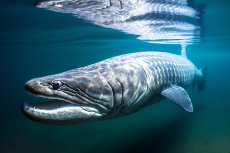 This spectacular Alligator gar (Atractosteus spatula) swims in the freshwater. Generative AI