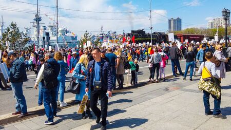Vladivostok, Primorsky Krai - may 9, 2019: Ship quay, a lot of people celebrate the Victory Day.