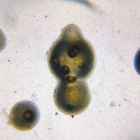 Cell division under microscope view. Microscopic view of cell.