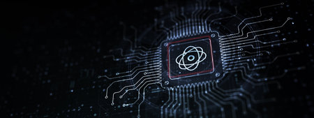 Quantum Computing Revolutionizing Information Processing Illustrated on a Processor Touched by a Human Hand.