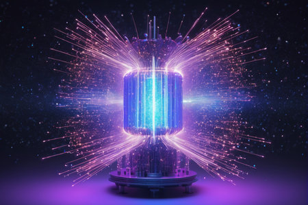 Futuristic energy core with glowing purple and blue lights. concept of advanced technology, energy, innovation, high-tech design.
