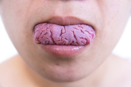 Bacterial infection disease tongue,The tongue is thrush.Tongue wound.Fissured tongue