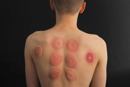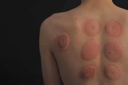 Vacuum therapy. A can of back massage. photo of the back after a vacuum, can massage. High quality photo