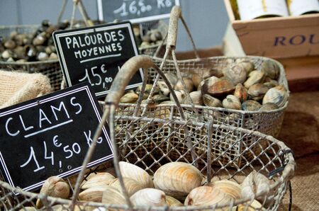 Marinated garlic and olives on provencal street market in Provence, France. Selling and buying.