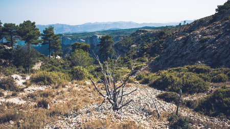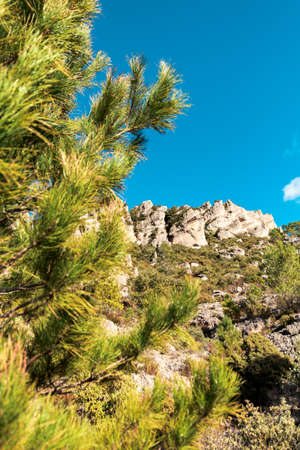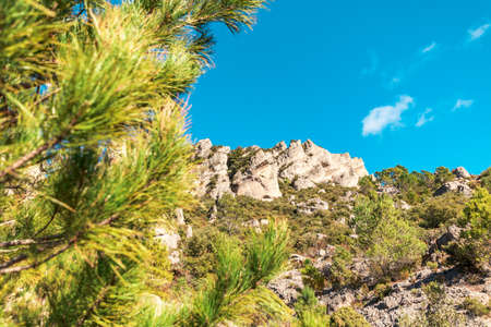 Rocky landscape in Siurana de Prades, Tarragona, Spain. Copy space for text