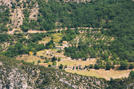 Verdon, France. Beautiful landscape of the Gorges Du Verdon in south-eastern France. Provence-Alpes-Cote dAzur. Old house and garden in mountain valley