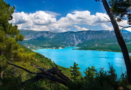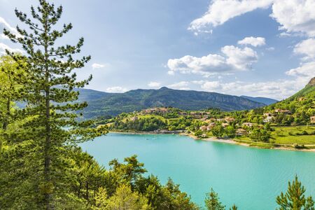 Postcard from Provence. Beautiful Lac De Castillon in summer. Summer touristic season in Europe
