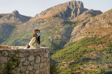 lifestyle portrait of young happy and cheerful Asian Korean tourist woman visiting Spain during Summer holidays travel hiking and enjoying nature from beautiful viewpoint