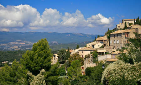 View on Gordes, a small typical town in Provence, France. Beautiful village, with view on roof and landscape