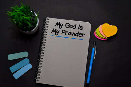 My God Is My Provider write on a book isolated on office desk. Christian faith concept