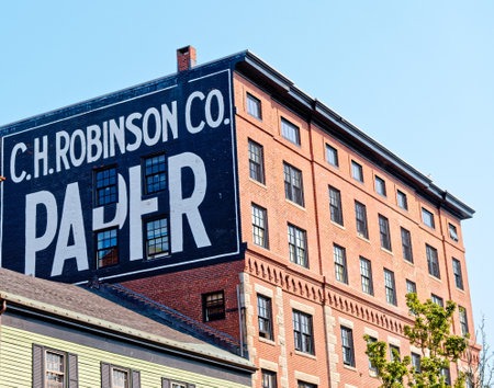 Portland, Maine - September 26th, 2019: Historic W.L. Blake & Co Mill and Industrial Supplies, brick building in Old Port district of Portland.