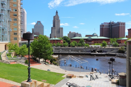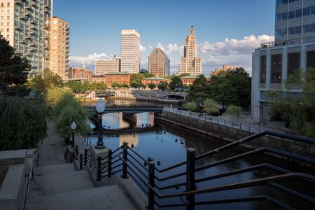 Providence, Rhode Island. Scenic view of a beautiful modern downtown city and Providence river.