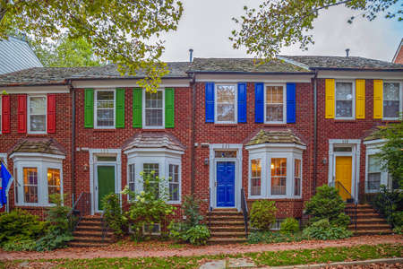 BALTIMORE, MARYLAND - MARCH 3: Colorful row homes in this Hamden neighborhood on March 3 2017 in Northern Baltimore.