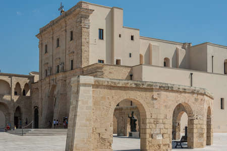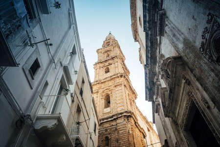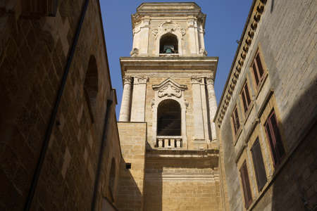 Monopoli, Puglia Italy - Thursday 22 August 2019: bell tower of the Madonna of the Madia cathedral