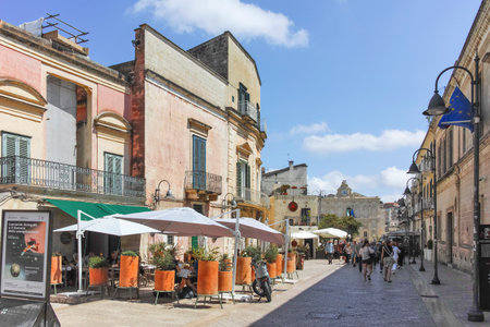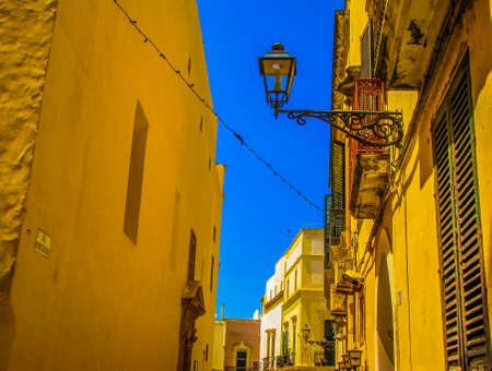 Italy, Ostuni, July 2018 - panorama of a favorite tourist area in the historic center of Ostuni, Southern Italy