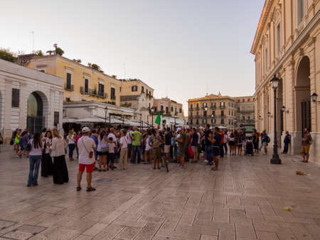 Bari, Italy - August 7, 2021: People in the Ferrarese Square (Italian: Piazza del Ferrarese).