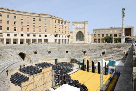 Ancient amphitheater in city center of Lecce, Puglia, Italy