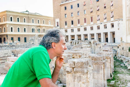 adult man among the ancient palaces of Lecce Baroque