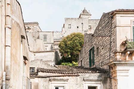 green tree near old buildings in modica, Italy