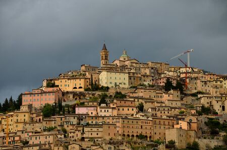 Historic buildings of Todi, Perugia, Umbria, Italy, typical street and landscape