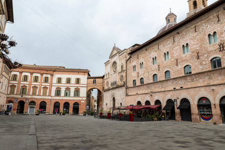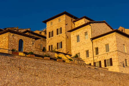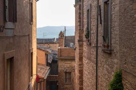 Historical buildings in the old city center of Assisi, one of the most beautiful medieval towns in central Italy