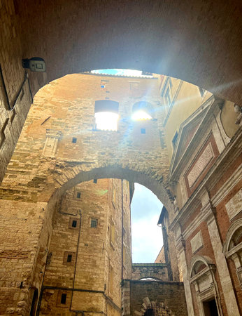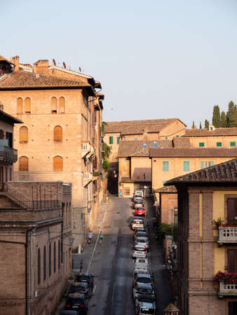Siena, Tuscany, Italy - August 16 2021: Via del Sole Street in Valdimontone District.