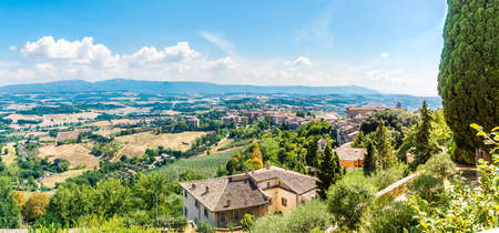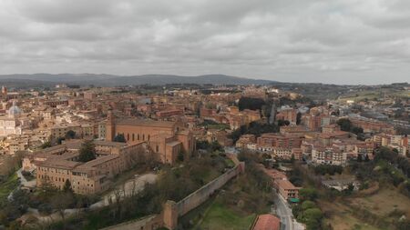 Siena, Tuscany. Beautiful aerial city skyline from surrounding hills.