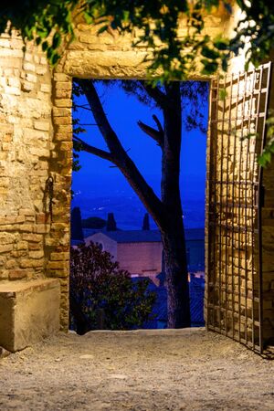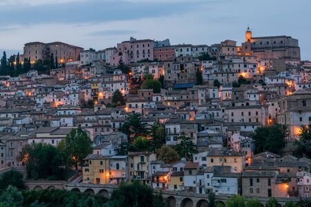 Medieval village of Loreto Aprutino in Abruzzo. Italy. Panoramic view at dusk with striking illumination.