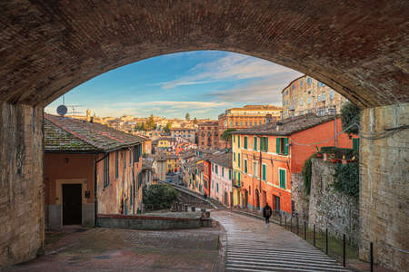 Perugia, Italy on the medieval Aqueduct Street in the morning.