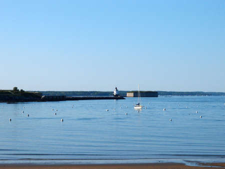 A view of the lighthouse at the entrance to the North Sea in Cohasset, Massachusetts