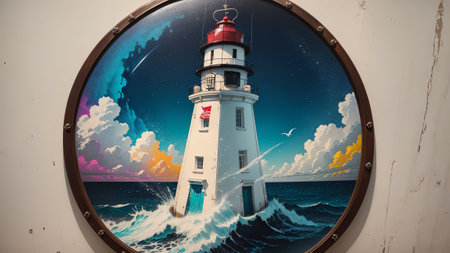 Lighthouse, sky and building of port direction bay the ocean. Ai generated light as sea navigation