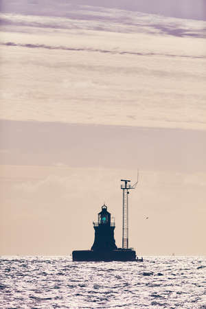 Silhouette of a beacon at sunset, selective focus, color toning applied.