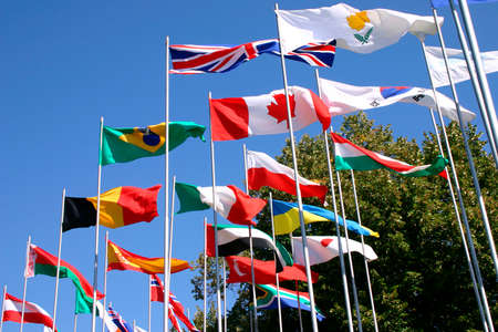 Different countries flags blowing in the wind