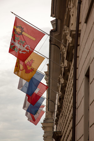 Swiss flags downtown Luzern, Switzerland