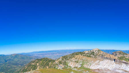 Provo Peak views from top mountain landscape scenes, by Provo, Slide Canyon, Slate Canyon and Rock Canyon, Wasatch Front Rocky Mountain Range, Utah. United States.