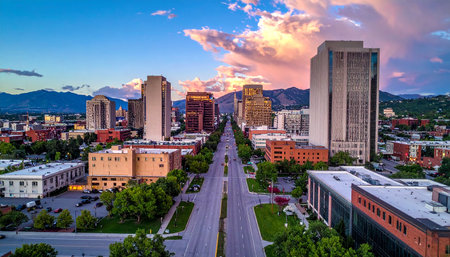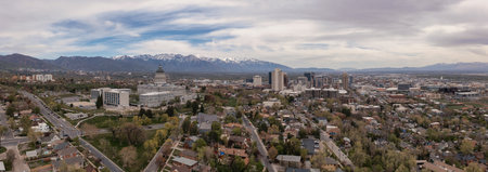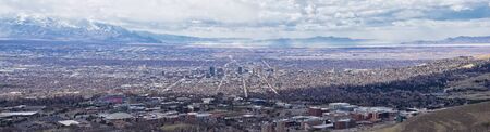 Aerial panoramic view of the Salt Lake City skyline Utah