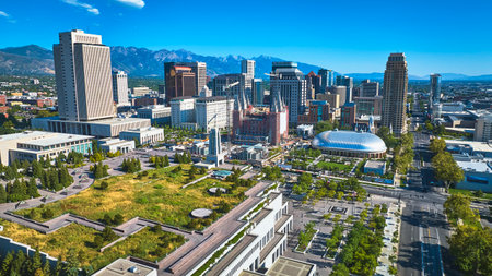 Aerial County Building Downtown Salt Lake City Wasatch Mountains Urban Landscape