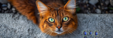 Stunning Somali Cat Portrait with Captivating Green Eyes, Graceful Charm, and Outdoor Setting