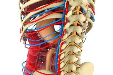 healthcare 3d illustration, Thoracic, middle zone of vertebra on x-ray organism