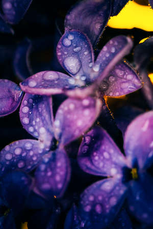 Beautiful macro photo of the beautiful purple lilac with waterdrops