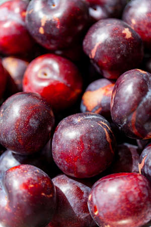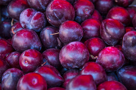 Background of fresh ripe healthy plums.