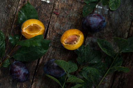 plums fruits natural products on a wooden table top view