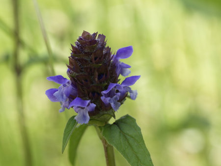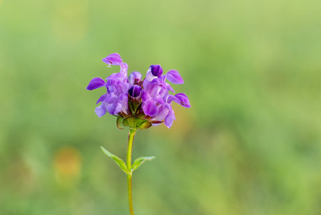 Prunella vulgaris flower growing in meadow, close up