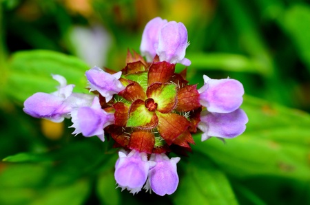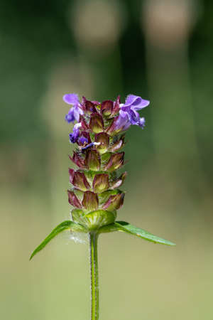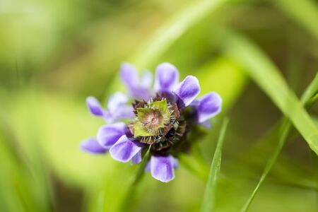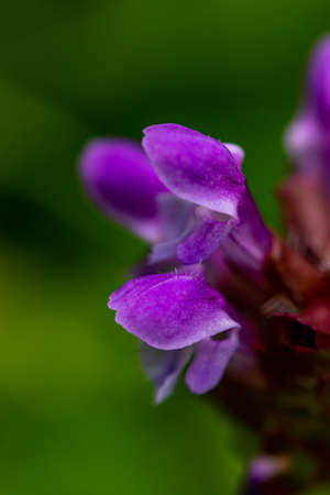 Prunella Vulgaris makro single natural flower, medicinal herbs nature background.