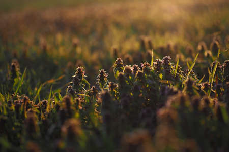 Field plants on a sunny May day. Countryside landscape.