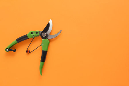 Gardening secateurs on orange background