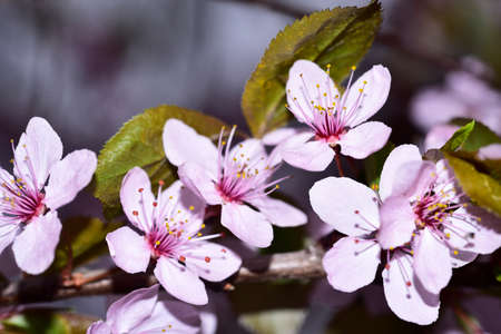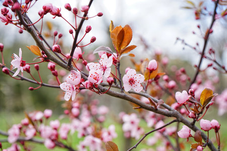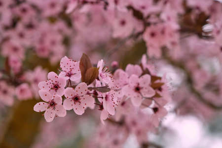 Blossoming prunus cerasifera cherry plum springtime pink flowers