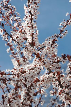 Flowers of plum tree, also known as Prunus cerasifera Pissardii, in early spring